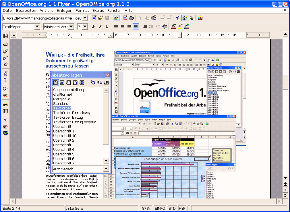 OpenOffice.org 1.1 - Textverarbeitung, Tabellenkalkulation, Präsentationen und mehr